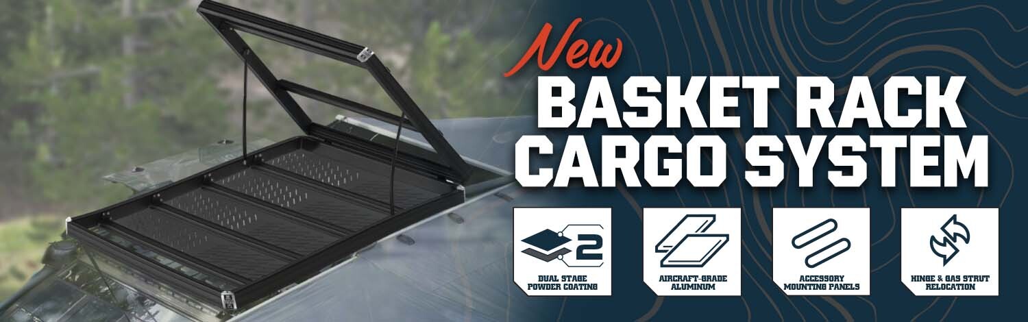 Maximize your carrying capacity and keep your gear secure with the Basket Rack Cargo System by Overland Vehicle Systems. Built from aircraft-grade aluminum and finished with a durable dual-stage black powder coat, this rack is engineered to handle any adventure while maintaining a sleek, low-profile design.