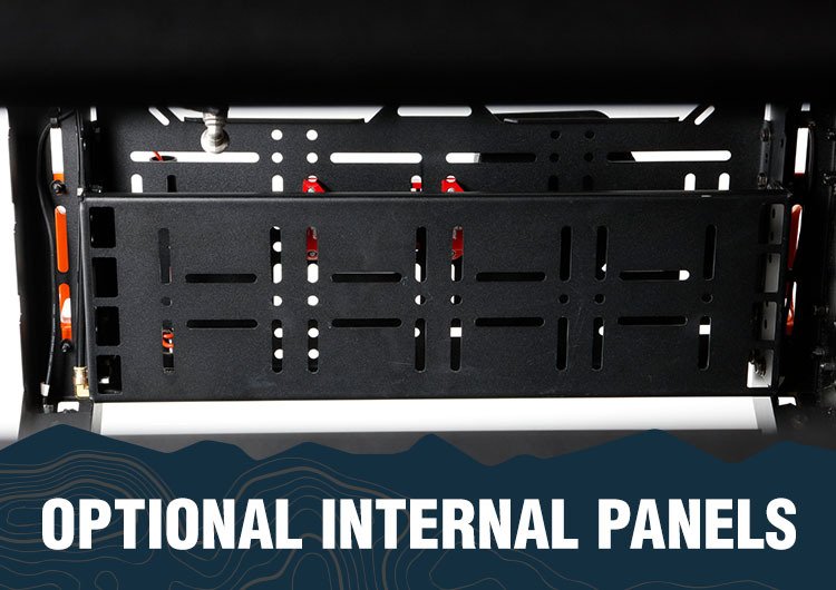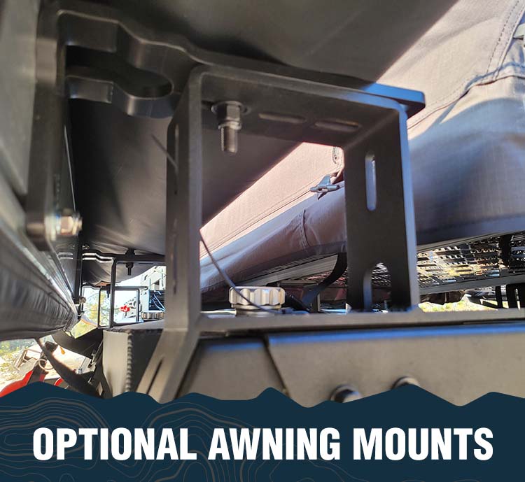 - Optional Awning Mounts, Tent Risers, and Inner MOLLE Panels