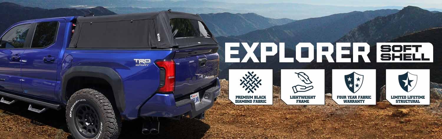 The Explorer Soft Shell is engineered for durability, adaptability, and adventure. Built from Black Diamond Canvas that’s UV-protected, mildew-resistant, and waterproof, it delivers all-weather protection while keeping your cargo safe and secure. Designed for versatility, the rear window rolls up or removes completely, giving you control over airflow and visibility in any condition. The lightweight aluminum frame makes setup and operation easy for one person, while DOT-Tinted 30 Mil vinyl windows ensure safety and compliance on every drive.Installation and removal are fast and hassle-free thanks to user-friendly zippers and belt rails, while the aerodynamic design sits flush with your cab for a sleek look and improved fuel efficiency. Best of all, you’ll enjoy full bed access without removing the soft top, and built-in retention straps let you fold and secure the frame during long hauls.