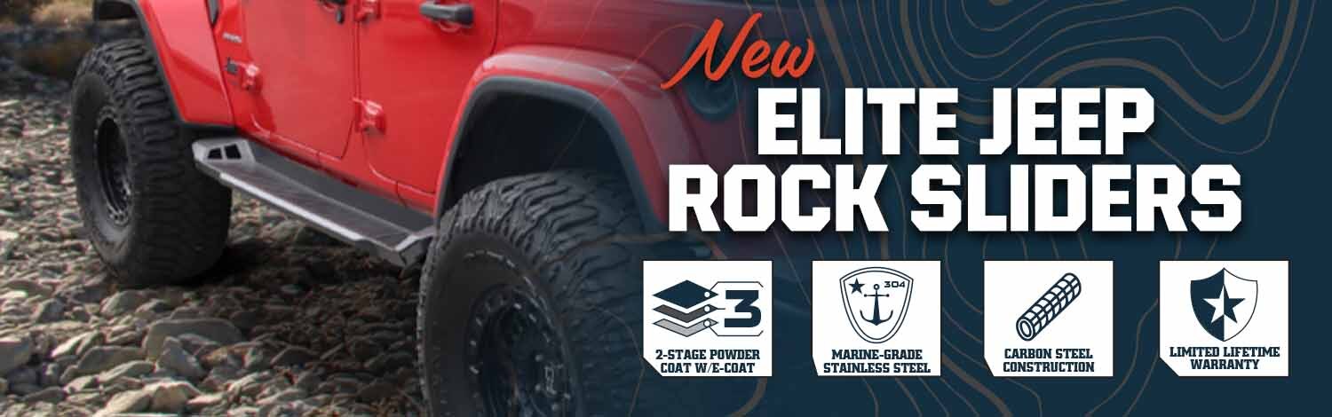 Defend your Jeep’s body from trail hazards with the Elite Jeep Rock Sliders. Designed to handle the toughest conditions, these sliders provide full-length protection along your cab while doubling as a sturdy step for easy access.